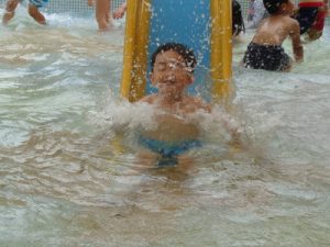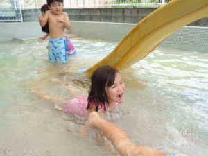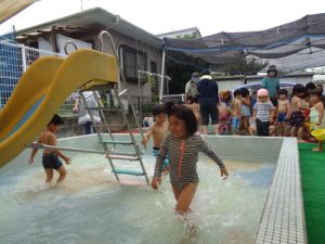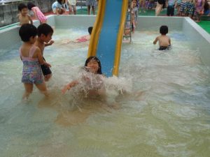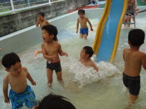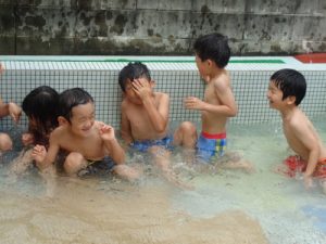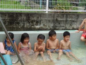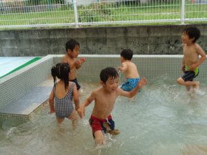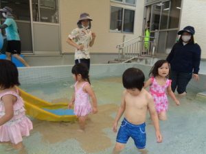 「わぁ~つめた~い!!」「楽しい~」などの言葉も聞こえ、大はしゃぎの子ども達でした😄