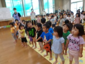 パプリカの曲と、手拍子で登場してきた子ども達は、少し恥ずかしそうでした☺