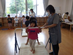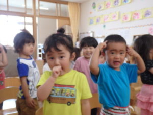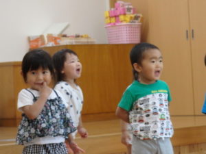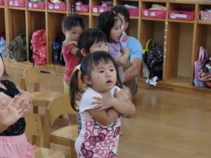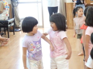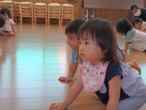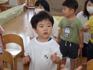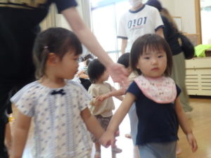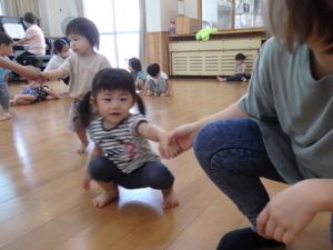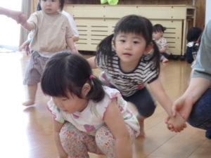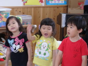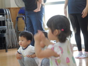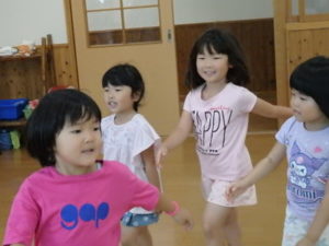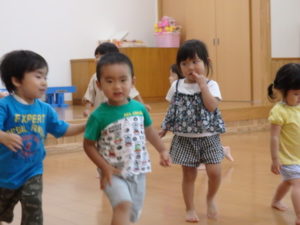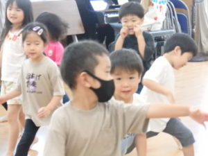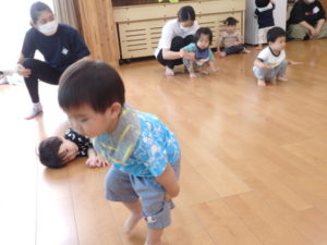楽しんでいました。その後、うさぎ組と一緒に遊戯室でリトミックをしました。