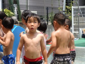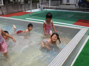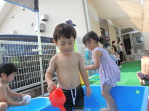 ぱんだ組は、体操後プール遊びをしました。