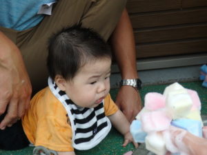 スポンジと泡の感触が楽しかったです。お父さん、お母さんと一緒で嬉しそうでした。