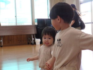 きりん組は、体操後、くま組と一緒にリトミックをしました。