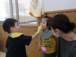 - おやつを食べさせてもらいました