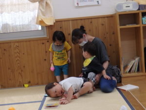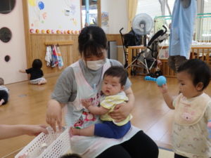 先生や、保護者に抱っこされて楽しそうにしていました。