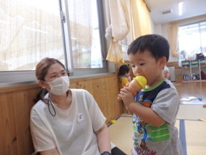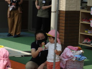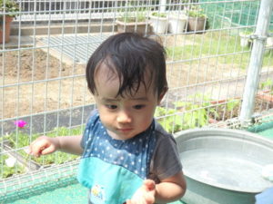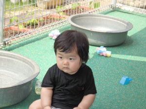 給食まで時間があったので予定にはなかった水遊びをして満足のくまさんでした。