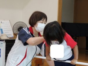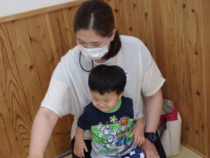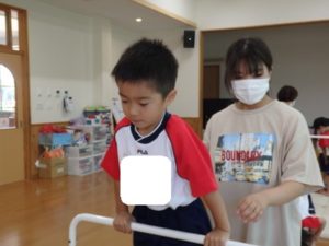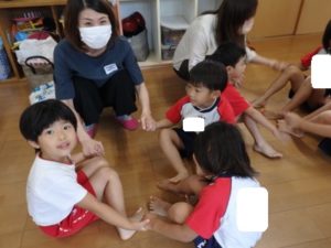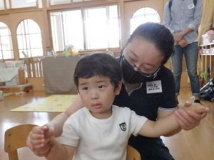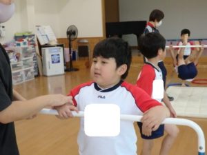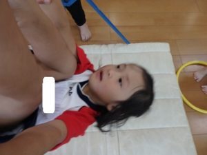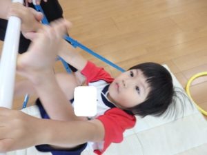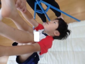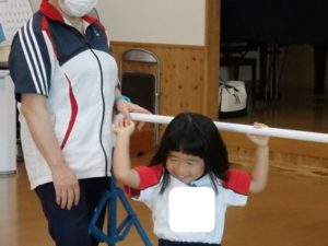 その後、体操教室で鉄棒をしました。足抜き、尻抜き回りを頑張っていました。