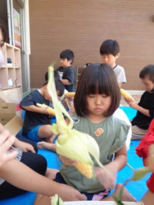 きりん組🦒 とうもろこしの皮むき