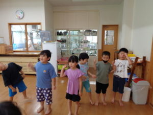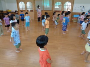 猛獣狩りゲーム、じゃんけん列車、フープくぐり・・・と3つのゲームで盛り上がりました。