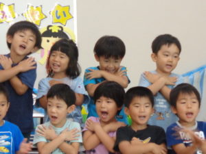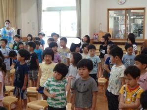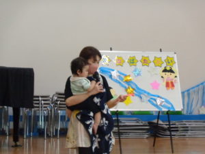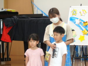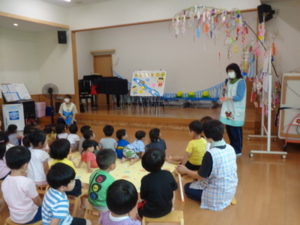 七夕の由来についてのお話、手遊び、歌、七夕クイズなど色々な事をしました。