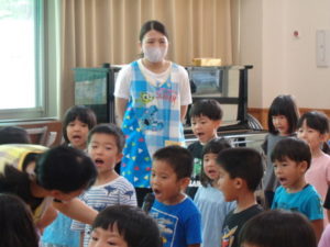 由来についてのお話は、パネルシアターを集中して見る子ども達。