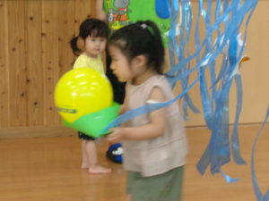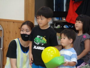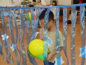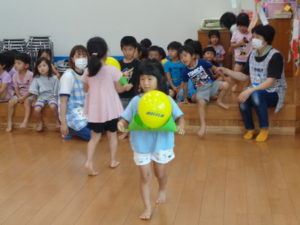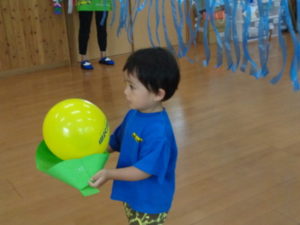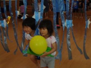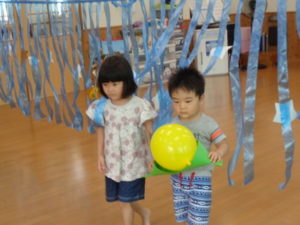 笹船に乗せた風船🎈を運ぶゲームを行いました。