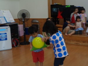 最後は、うさぎ🐰・ぱんだ🐼・くま🐻・きりん🦒組で、風船🎈運びゲーム❣