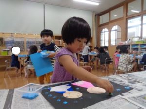 先日、織姫・彦星の製作をした周りにペタペタと・・・。