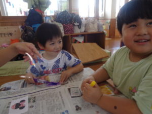 今日は、ぱんだ組、くま組、きりん組はたしまっ子タイムでした。