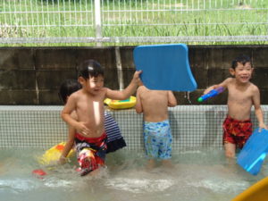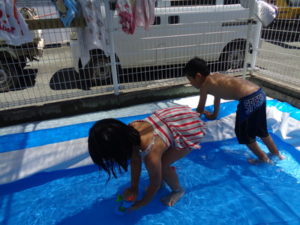 プールのコーナーもあり、思いっきり楽しんでいました。