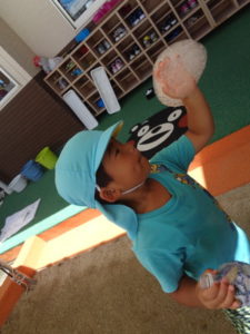 保育者が息を吹き込むと、沢山泡が出てきて子ども達は大興奮🎶