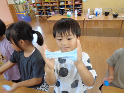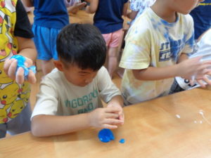 その後の主活動では、くま組と一緒にスライム遊びをしました。