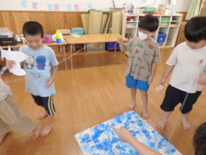 見た後、各クラス、手作りのおもちゃで遊びました。