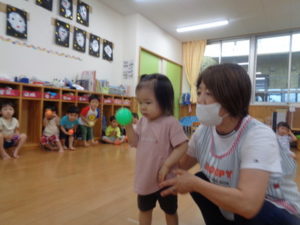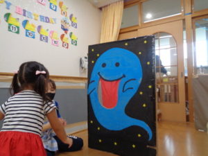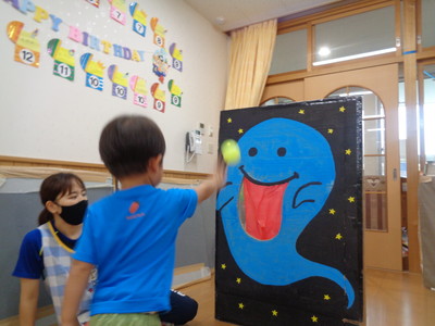 また、オバケ👻の的は怖いという子どももいましたが、上手にオバケ👻の口の中にボール🥎を入れていました。