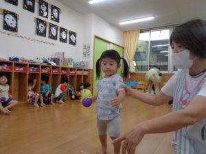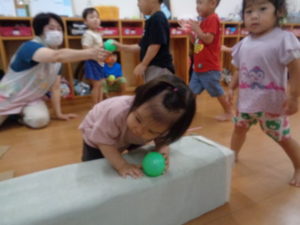 りす組🐿のお友達は、ボールを投げるのが少し難しかったようですが楽しんでいました。