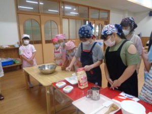 夏休みの思い出作りとしてクッキー作りを行いました。