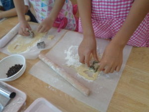 いざ型抜きになると、生地を延べ棒で伸ばすことに苦戦する子ども達・・・。