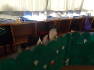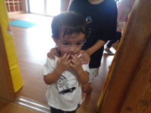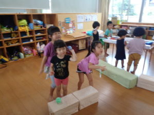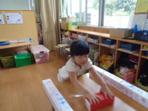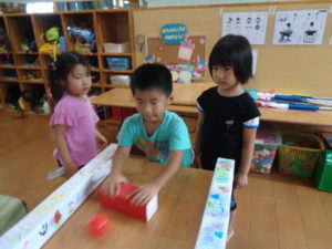 きりん組の部屋は、ゲームのコーナーで的当てや、手作りのストライクホッケーもあり楽しんで出来ました。