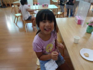 ランチルームでは、カフェのコーナーが用意してあり、クッキーとジュースのチケットを持って交換し、美味しそうに食べていました。