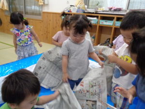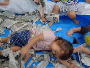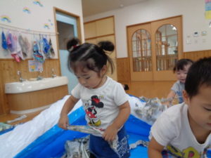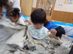 自分達でビリビリとちぎってみたり、くしゃくしゃにしてみたり