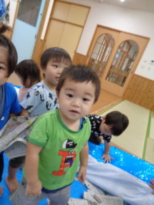 ビリビリという音に反応して、笑顔になる子ども達😀