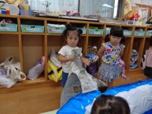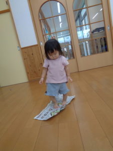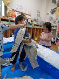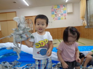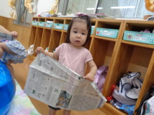 お友達同士で新聞を投げ合い、笑顔になる姿はとても可愛かったですよ🧡🧡