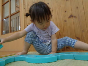 その後、大型ブロックで繋げようと集中したり、