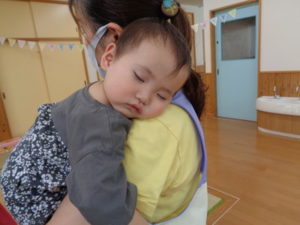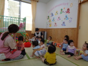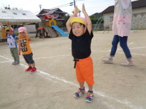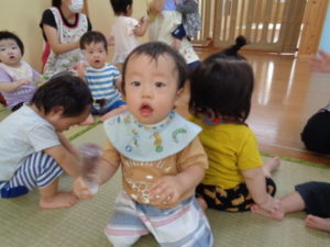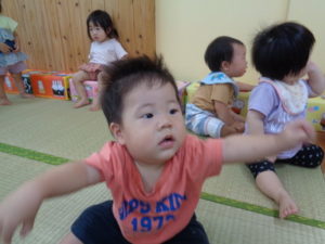 今日は、お集まりをした後、ハイハイとかけっこの練習をしました。