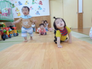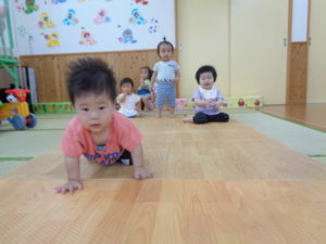 保育士が待っているゴールまで、ニコニコでハイハイしてくる子や、