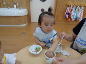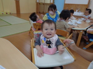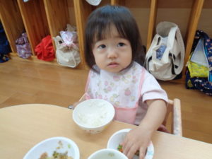 給食も、モリモリ食べて元気いっぱいのひよこ組さん🐣です。