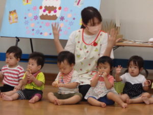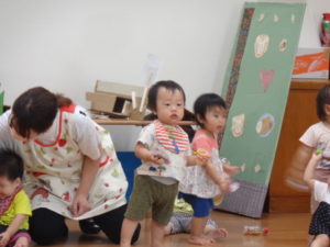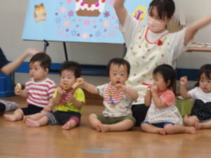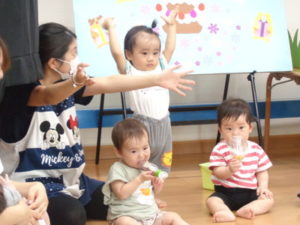 ひよこ組さん🐣による出し物「きらきら星」「おもちゃのチャチャチャ」を披露してもらいました。