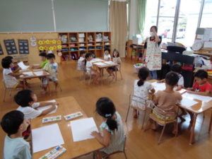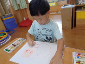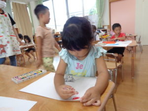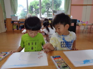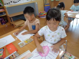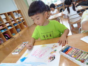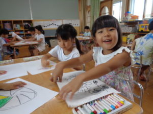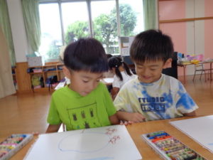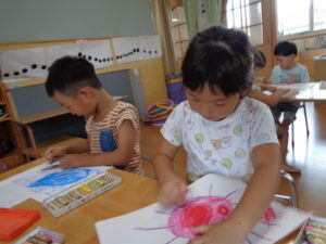 1人ひとり個性のある絵が出来あがり、子ども達同士で見せ合って
