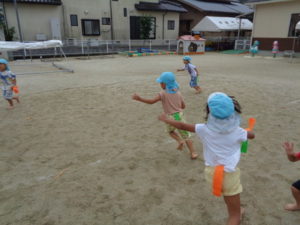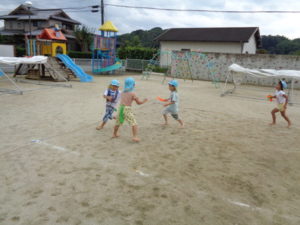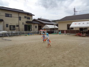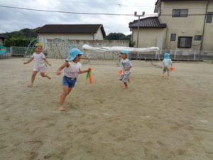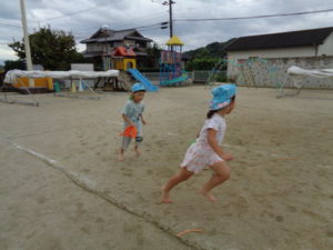 最後は、裸足で外に行き、くま組🐻みんなでしっぽ取りゲーム❣❣