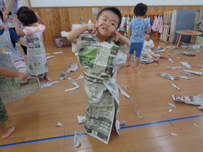 うさぎ組🐇さん 📰新聞紙遊び📰&ぱんだ組🐼さん 🌾お散歩🍂