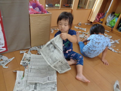 うさぎ組🐇さん 📰新聞紙遊び📰&ぱんだ組🐼さん 🌾お散歩🍂