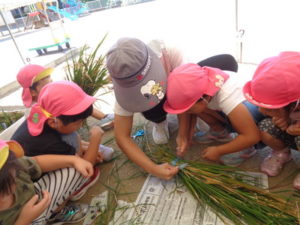 そして、鎌の持ち方やお約束をしっかり聞き、先生のお手本をみました。