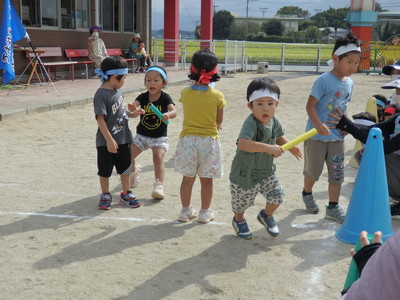 リレーでお友達に負けないぞと意気込むくま組さん🐻