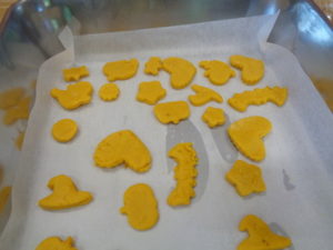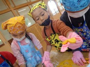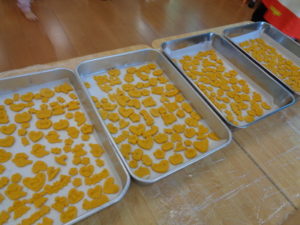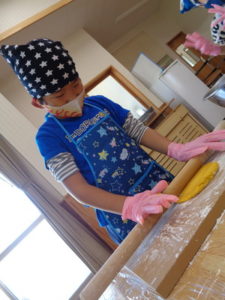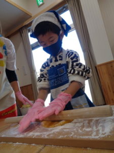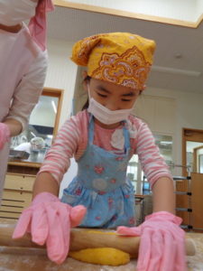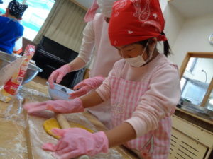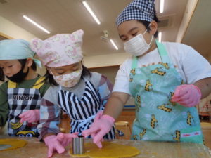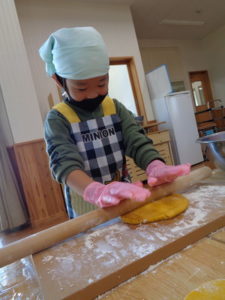 その後は、めん棒を使って伸ばし型抜きをしました。