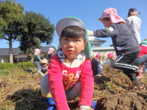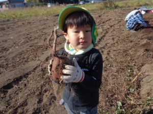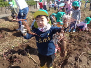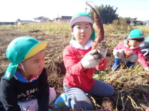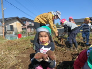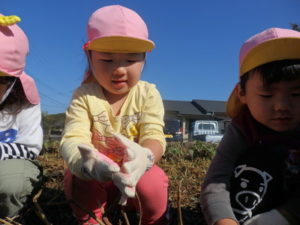 「掘れた~」と掘れた芋を持って喜んでいました。