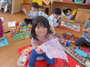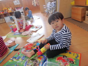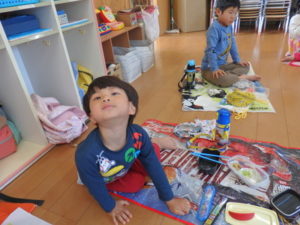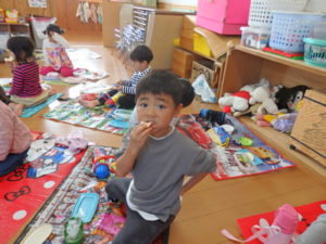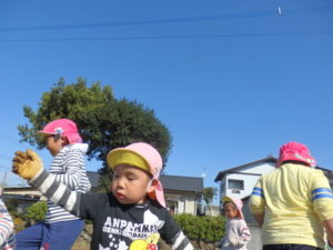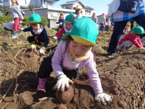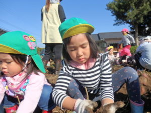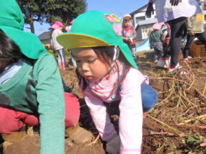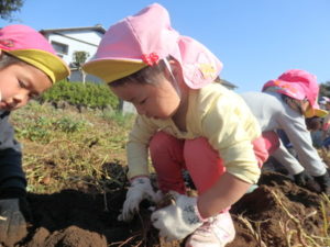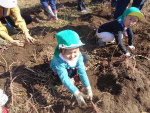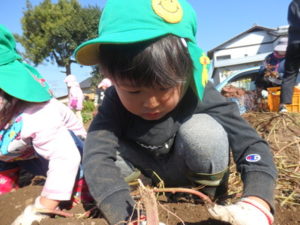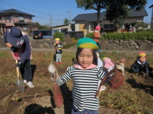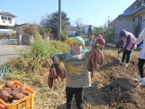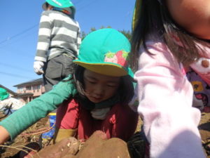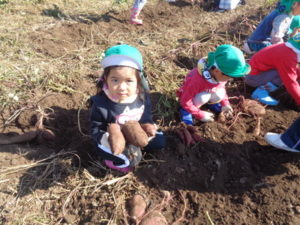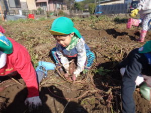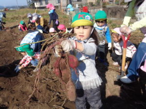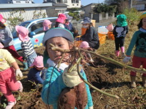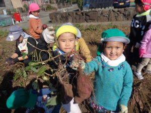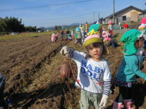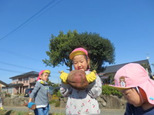 いくつも掘って楽しむ姿がありました。きりん組も先日七城の畑で芋掘りをしたばかり