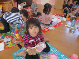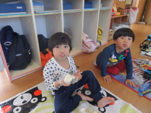 帰ってからは、給食を空弁当に詰めてもらって食べる日で、みんな喜んでいました。