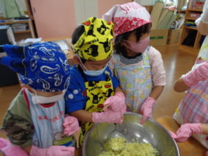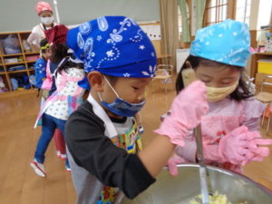 「早く食べたいな」と楽しみに待っているくま組🐻の子ども達でした。
