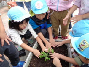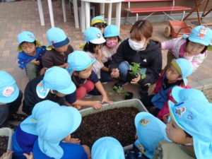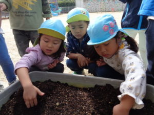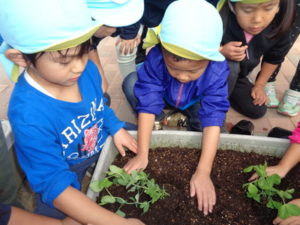 「早く大きくなってね❣」と優しく土をかけたり、お水をあげたり