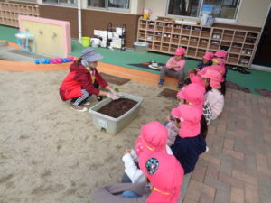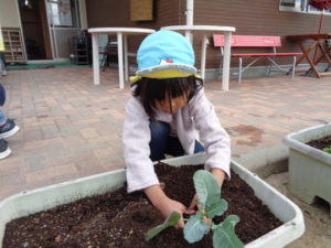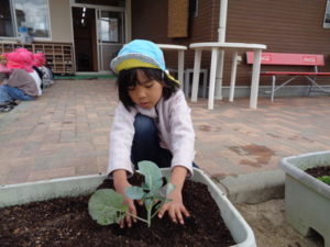 そして、くま組🐻では、冬の野菜”スナップエンドウと””ブロッコリー”を植えました。