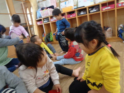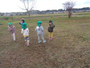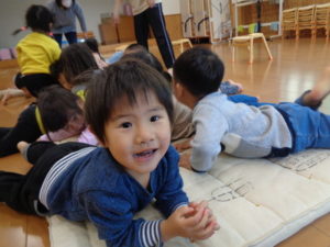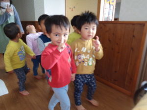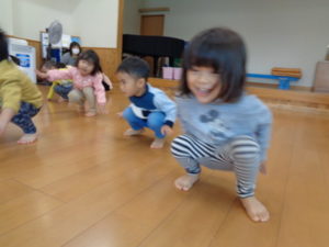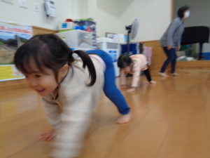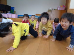 寒さに負けないよう、走ったり、うさぎ🐇やカエル🐸、馬🐎になり切ったり、沢山身体を動かしてました。